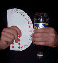 Pesulap melempar menyebar semua kartu ke belakang penonton.Kemudian kartu yang sudah ditandai itu ada di dalam botol.